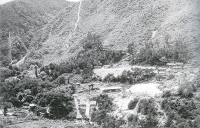 鵜峠の越目浜から左に、薬師堂の赤い屋根をみながら本谷川に沿って登って行くと、船谷の鉱山がある。