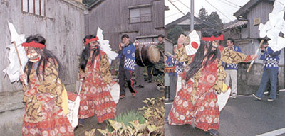 大土地神楽を移入したものとされたが、昔は盛大に行われたが、後継者なく廃れようとしている。近年長く行われていない。また、鵜峠にもしゃぎりがある。大宮神社元旦祭に続いて1月2日に鵜峠のしゃぎりが午後2時から行われる。
