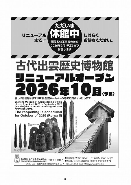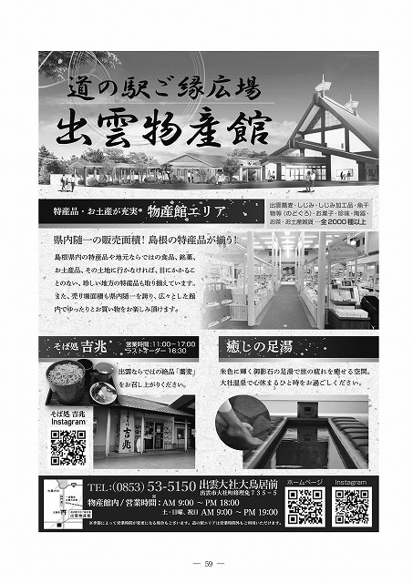 アトラ クション (12:00) (1)大社神謡 大社神謡保存会会長 馬庭 孝司様 大社中学校生徒吉兆支援保存会会長 岩井 元康様 大社中学校生徒吉兆支援保存会事務局長 松井 和生様 (2)番内登場 (3)演 奏 サキソフォンカルテット「コパン」 (4)大梶踊りを踊りましょう 会場の皆様と一緒に全員で | |