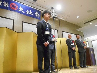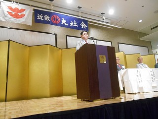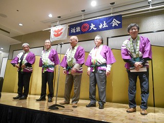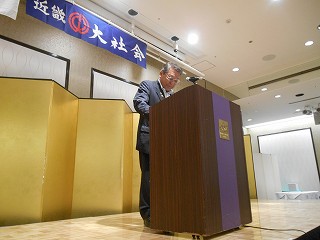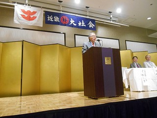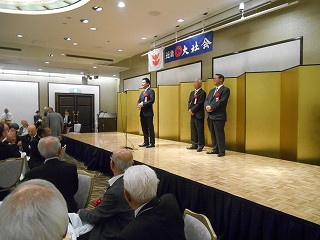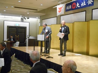 (1)ご来賓紹介 常任幹事 石飛 幸子 (2)挨 拶 会 長 千家 敬麿 (3)祝 辞 出雲市長 飯塚 俊之様 (代理))出雲市大社行政センター所長 松井 博之様 出雲市議会副議長 大場 利信様 (4)乾 杯 出雲市議会議員 長廻 利行様 (5) “大社旋風” 大社高校野球部OB会会長 小山 峰明様 “熱 闘” 大社高校野球部OB会事務局長 杉谷 浩様 “甲 子 園” 大社高校野球部監督 石飛 文太様 会 食 (11:40) |