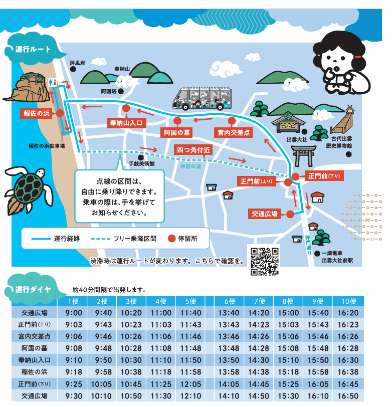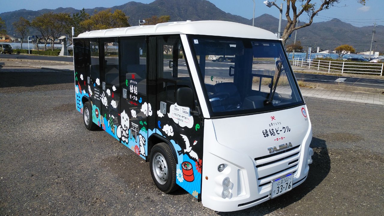 大社町をのんびり周遊 ”電気自動車運行” 稲佐の浜までおんぼらと―乗客6人を乗せて出雲大社周辺を周遊する電気自動車の運行が5月から始まった。時速20キロ未満のスロー運転が特徴だ。交通広場発着で毎週金曜日から月曜の4日間、1日10便を走らせる。「大社名物として定着してほしい」と出雲市観光課では期待を寄せている。 ![]() 車は8人乗りの電気自動車で、愛称は「縁結ビークル(えんむすびびーくる)」。出雲大社にちなんむ「縁結び」と乗り物を意味する英語の「ビークル(Vehicle)」を合わせた。運行に先立って出雲市が愛称を募集したところ、約200点の応募があり、イメージに合うとしてこの愛称を採用した。車は窓を大きく取り、車体にはウサギやノドグロ、そばなど大社にまつわるラッピングが施されている。価格は約900万円。 運行主体は、大社地域自治協会連合会、出雲観光協会、商工団体、交通安全協会、交通事業者、出雲市で構成する「出雲市グリーンスローモビリティ運行協議会」。出雲観光タクシーが運行する。 運行ルートは交通広場をスタートし正門前、宮内交差点、阿国の墓、奉納山入口、稲佐の浜(稲佐の浜駐車場)の停留所を経由し、神迎の道を通って交通広場に戻る約3キロ。30分かけて巡る。毎週金曜日から月曜日、午前9時から40分間隔で10便を運行する。乗客の定員は6人。神迎の道に停留所はなく、運転手に知らせ空席があれば、どこからでも乗れる。1乗車の運賃は500円、「ワンデ―パス」1000円、「ツーデーパス」1500円。 乗車時に現金かキャッシュレス決済(Paypay)で支払う。事業費は757万円(うち出雲市の補助金390万円)。運行協議会は今年、延べ7000人の利用を見込んでいる。 ![]() 出雲市観光課によると、今年2月の実証実験は7日から11日までの5日間実施。悪天候のため減便し、利用は108人、1便あたり4.5人だった。利用者アンケート(33人)では、88%がサービスに満足と回答。停留所の位置、走行の安全に対する満足度は高く、車体のラッピングデザインも好評だった。交通広場、正門前から稲佐の浜に向かう利用者が多く、周遊性の向上に効果があると、観光課では判断している。運賃については 利用者の70%が満足と回答する一方、周辺店舗の割引券や他の移動手段との連携、観光ガイドを希望する人が多かったといい、出雲市グリーンスローモビリティ運行協議会で今後も検討を重ねていく。 出雲市の原哲也・観光課長の話「5月9日に運行を開始し、観光客を中心に、大社地域の周遊手段として多くの利用があり、印象的で親しみのあるデザインも好評をいただいています。今後、夏季,秋季に向かって行く中で、冷暖房も完備しているので、快適に出雲大社周辺の情景を楽しみながら周遊する手段として、より一層の利用を期待します」 |