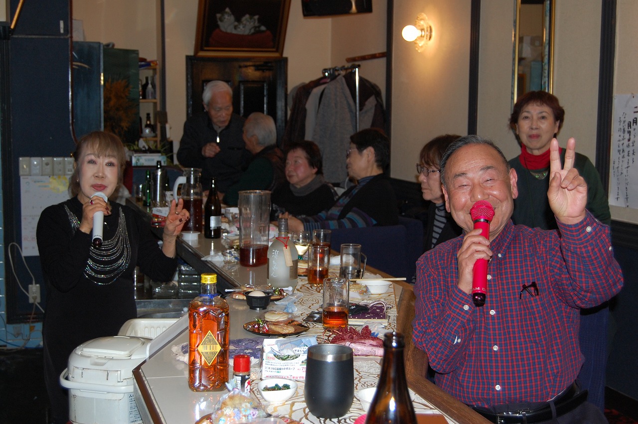 一曲入魂 ”カラオケ道” ♪あの人この人 あの顔この顔 みんなどうしているんだろう…元気でいるか 変わりないか 遠き昭和の まぶしい時代―小林旭「遠き昭和の」の一節です。近畿大社会の皆様の多くは昭和生まれの昭和育ち、ふるさと大社と何らかの縁を持つ方ばかりですから、この会での交流は私に安心と喜びとパワーをもたらしてくれます。 同様に私の居場所としてなくてはならないのが、カラオケ好きの参集する集いです。店の名も「集い」です。 「能勢電県人会」と称し、毎月第一木曜日の正午から5時までスナック「集い」(能勢電鉄・多田駅下車7分、道路を挟んで「餃子の王将」向かいのビル1階)で喋ったり、歌ったりしています。もちろん貸し切りです。最初の1時間ぐらいは近況報告、連絡事項、帰省の土産話、ふるさとの話題など情報交換すると、ふるさとモードが満開。 ママの手料理とアルコールで気分が盛り上がり、滑舌も良くなったところでカラオケタイムの開演となります。 ![]() 近くにあったカラオケ喫茶「だんだん」のママが平田の出で、その縁で集まるようになったのが発端とのことですが、ママが亡くなり、客のひとりでもあった「集い」のママが後を引き継ぐ形で店を提供し、今日に至っています。 さて、メインのカラオケタイム。マイクが六巡することもざらにあるため、選曲に悩むこともあります。選曲、歌い方、テーマ、感情表現など、それぞれに個性が出ていて実に面白い。例えば、@民謡が得意で「ふるさと」を歌わせたら右に出る者がいないほど上手な方Aせりふ入りの歌が好みで、そのせりふのほうがすこぶるうまい方B水森かおり系、美空ひばり系、都はるみ系など特定の歌手限定で勝負する方 Cデュエット曲のうまい方D毎回新曲に挑戦される方など、バラエティ−に富んでいます。ふるさとにちなんだ歌も多く披露されます。「こんな歌もあるんだ」と毎回のように驚かされます。その歌の数々は文末で紹介します。 私が初めて参加したのは、2016年の7月25日でした。通い出して、もう9年になろうとしています。私の所属するシニアソフトボールチーム「猪名川迷球会」と定期戦の相手チーム「豊能シニアズ」の懇親会がきっかけでした。私の出雲弁を豊能シニアズのSさんが聞きつけて同郷だと分かり、そのSさんから誘いを受けて「だんだん」に足を運ぶようになりました。皆さんと顔を合わせ、飲んで、喋って、歌って、「また来月、元気で会おうね」 と笑顔で別れる。たったそれだけのことですが、大いに元気をもらっています。かけがえのない居場所ですから、万難を排して出席に努めています。 私は大衆演劇の大ファンで、ひところは大阪・新世界の「朝日劇場」に年4回ぐらい足を運び、2時間を超える歌舞ショーを楽しみました。大衆演劇になくてはならないのが演歌。演歌(艶歌・縁歌・宴歌)大好き人間なのです。なかんずく船村徹・弦哲也の曲が好きです。 最近よく歌うのは「好きだから松江」(伊吹ゆかり)、「舞酔い雪」(大川栄策)、「おんなの灯り」(角川博)、「私には貴方だけ」(桂銀淑)、「東京砂漠に咲いた恋」(水田かおり)、「倖せさがして」(五木ひろし)、「夕陽の空へ」(清水博正)などです。 ![]() 以下、ふるさと関連の曲です